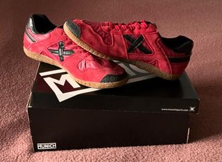 Zapatillas Munich Goal en talla 42. Combinan ante y nylon para un look deportivo. Utilizadas solamente una vez - Detalle de la 'X' característica de Munich. - Suela de goma. - Cierre de cordones.