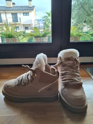 Deportivas altas UGG modelo Highmel en color arena. Perfectas para un look casual y abrigado. - Detalle de pelo en el cuello. - Cordones gruesos con diseño. - Suela de goma. Juego extra de cordones.