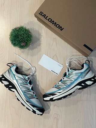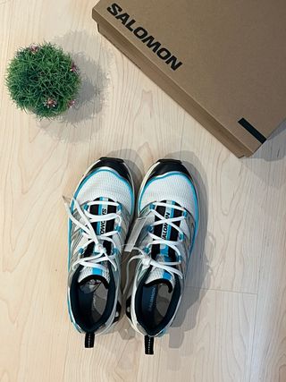 Zapatillas deportivas Salomon XT-6 Expanse. - Diseño con detalles en azul y plateado. - Parte superior de malla transpirable. - Suela robusta para mayor agarre.