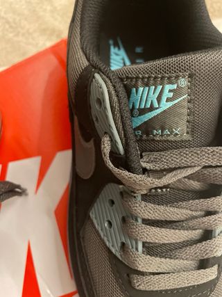 Zapatillas deportivas Nike en tonos negros y turquesa. - Diseño moderno. - Cordones a juego. - Logo de Nike visible.