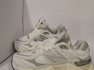 Zapatillas deportivas New Balance en tonos blanco y plateado. Diseño moderno y cómodo. - Parte superior de malla y ante. - Detalle del logo 'N' en los laterales. - Suela de goma para mayor tracción.