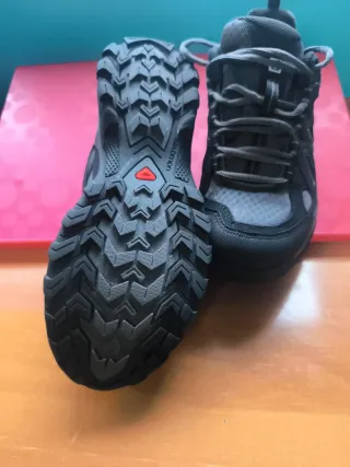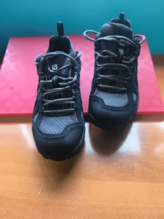 Zapatillas de trekking Salomon Evasion 2 Aero en color negro y gris. Perfectas para tus aventuras al aire libre. - Diseño transpirable. - Suela con buen agarre. - Cierre con cordones. No tiene caja