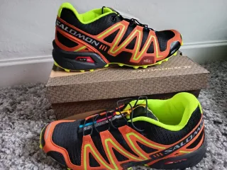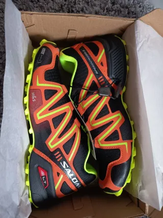Zapatillas de trail running Salomon Speedcross 3 en colores negro y naranja. - Diseño deportivo y llamativo. - Suela con buen agarre para terrenos difíciles. - Cierre rápido con cordones. - Detalle de logo en la lengüeta y el lateral.