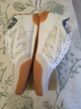 Zapatillas deportivas de excelente agarre en cualquier pista indoor y extremadamente cómodas - Combinación de materiales en blanco y tonos tierra. - Suela de goma resistente. - Detalles de costuras en contraste.
