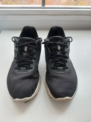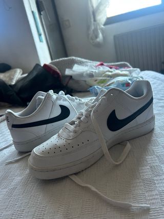 Zapatillas deportivas Nike talla 42. Tiene signos de desgaste por uso habitual incluso la suela. Tiene algunas pequeñas manchas que no se eliminan. Son unas zapatillas muy cómodas, se ajustan bien y perfectas para hacer deporte.