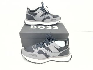 Zapatillas de moda para hombre de la marca BOSS. - Diseño moderno en tonos negro y gris. - Cordones para un ajuste seguro. Venta en persona en nuestra tienda,precio no negociable. No envíos web. Ref 570773