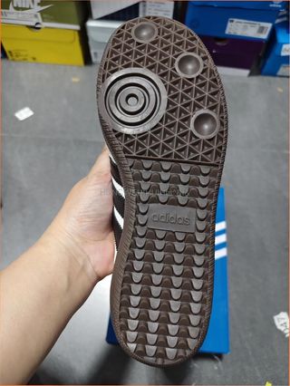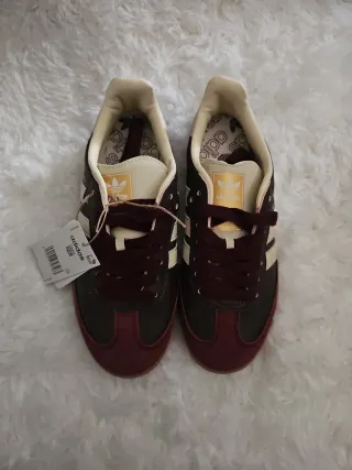 Zapatillas deportivas Adidas Samba en talla 37. Un clásico que combina estilo y comodidad. - Diseño icónico con las tres franjas. - Materiales de calidad para mayor durabilidad. - Suela de goma marrón. - Detalle de gamuza en la puntera.
