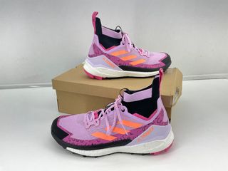 Zapatillas deportivas Adidas Terrex en tonos rosas y morados. - Diseño de caña alta. - Cierre con cordones. - Detalle de las tres bandas. - Suela de goma. Venta en persona en nuestra tienda,precio no negociable. No envíos web. Ref 570772