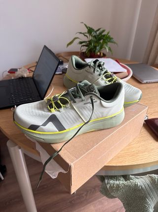 Tienen únicamente 10km, las vendo porque necesito una talla más pero son brutales. Zapatillas de running Mount To Coast en tonos verdes y blancos. Diseñadas para ofrecer comodidad y rendimiento. - Parte superior de malla transpirable. - Sistema de lazada rápida. - Suela con amortiguación. - Detalle de logo en el lateral.