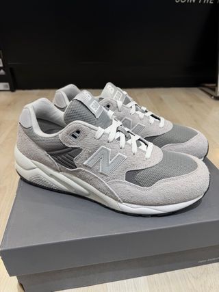 Zapatilla New Balance modelo 580 en color gris. - Diseño deportivo y moderno. - Combinación de ante y malla. - Cordones blancos. - Logo de New Balance en la lengüeta y lateral.