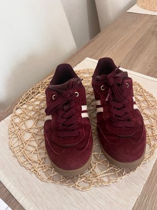 Zapatillas deportivas de Stradivarius combinada en piel en color burdeos con detalles blancos. - Cierre con cordones. - Detalle de franjas laterales.