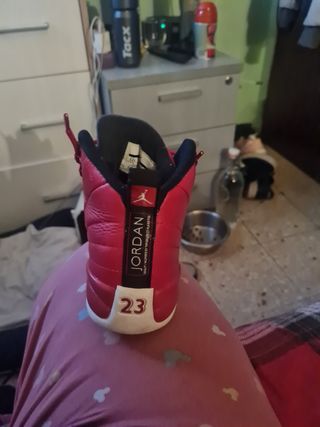 Zapatillas deportivas de la marca Jordan. - Diseño en color rojo y blanco. - Cordones rojos. - Suela blanca.