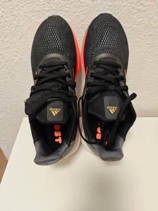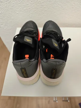 Zapatillas deportivas Adidas Astrarun en color negro con detalles en naranja. Perfectas para correr o para el día a día. - Parte superior de malla transpirable. - Suela con tecnología Boost para un retorno de energía óptimo. - Cierre de cordones. - Logo de Adidas en la lengüeta y en la suela. !!!ENTREGA EN PERSONA!!!!!