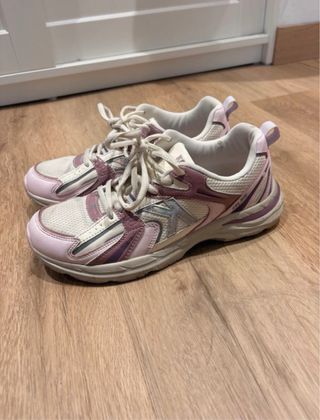 Zapatillas deportivas con un diseño moderno y cómodo. - Exterior de malla transpirable. - Cierre con cordones elásticos. - Suela flexible y antideslizante. - No son las de la marca - Usadas en dos ocasiones