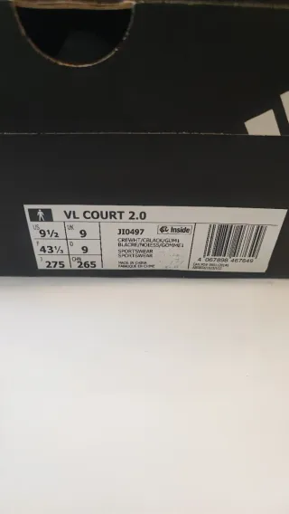 Zapatillas deportivas Adidas VL Court 2.0 - Modelo: JI0497 - Color: Blanco, negro y goma. - Talla: 43 1/3 EUR / 9 UK / 9.5 US. - Nuevas a estrenar con todas las etiquetas. - Precio NO negociable