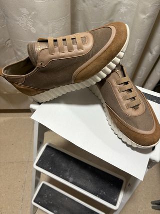 Zapatillas deportivas con un diseño moderno y cómodo. - Combinación de colores gris y blanco. - Suela de goma marrón. -nunca usadaS