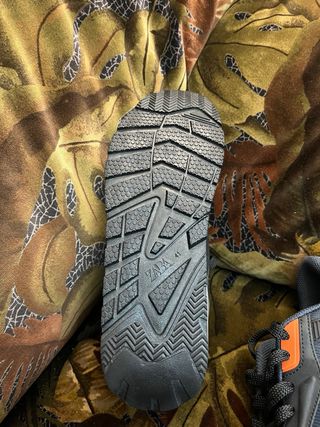 Zapatillas deportivas de Zara con un diseño moderno y detalles llamativos. - Combinación de colores azul y gris. - Detalle en color naranja en los laterales. - Cordones negros.