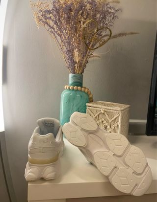 Zapatillas deportivas de en color blanco. talladas como un 38 pero son un 37 por eso las vendo Diseño moderno y cómodo. - Parte superior de malla y sintética. - Cierre de cordones. - Suela de goma.