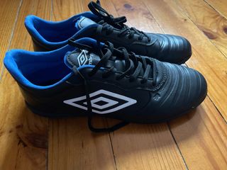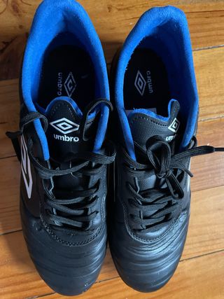 Zapatillas de fútbol Umbro modelo Suprema Classic en color negro con detalles en azul. - Diseño clásico y cómodo. - Logo de Umbro en blanco. Usadas 5 días, las vendo porque me regalaron otras