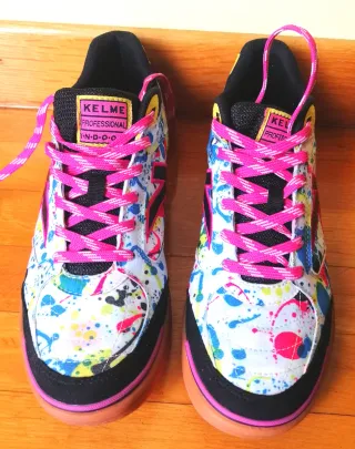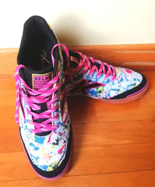 Zapatilla de fútbol sala Kelme con un diseño llamativo y colorido, edición especial del modelo Precision Profesional. Totalmente nuevas sin usar. Colores y modelo de una edición especial que hizo Kelme. Talla 42 Forro interior acolchado. Tengo alguna más en mi perfil, por si quieres otro modelo. - Estampado tipo salpicadura multicolor. - Cordones de color rosa fucsia. - Detalle de logo en la lengüeta.
