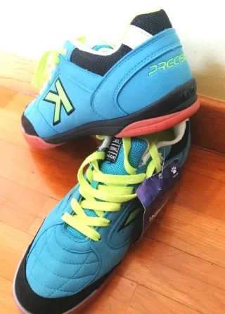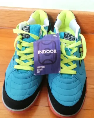 Zapatillas de fútbol sala Kelme, modelo Precision Profesional. Totalmente nuevas sin usar. Interior con Forro almohadillado. Empeine más holgado. Número 43 Tengo Mas modelos en mi perfil del número 42. - Color azul y verde lima. - Diseño para indoor. - Cordones de ajuste. - Suela de goma.