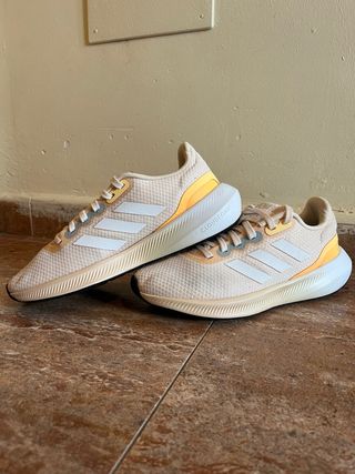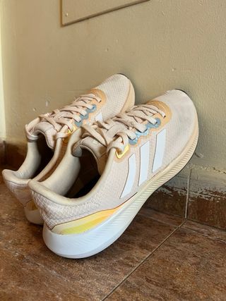 Zapatillas deportivas Adidas en tono rosa pastel con suela blanca. Con muy poco uso. Se puede ver en la suela. Producto original