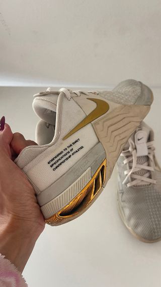 Zapatillas Nike Metcon 7 personalizadas. - Diseño exclusivo By You. - Combinación de colores beige y dorado. Zapatillas deportivas Nike metcon 7 personalizadas en color gris, crema y blanco con detalles en color dorado metalizado, talla 40,5. En perfecto estado. Las vendo porque no las uso… #nike #metcon #byyou #nikemujer #zaptillasmujer #sportswear #metcon7 #nikemetcon #nikemetcon7 #nikewomen