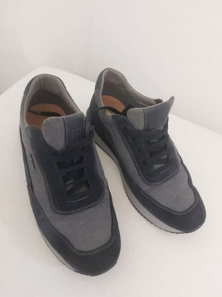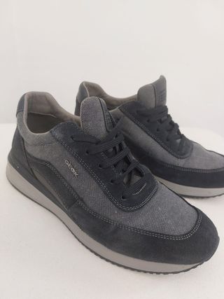 Zapatillas deportivas de la marca Geox para hombre. - Diseño moderno en tonos azules y grises. - Cierre con cordones. - Suela de goma. - Muy poco uso, perfectas para el día a día, muy cómodas.