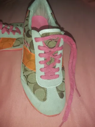 Zapatillas deportivas de mujer de la marca Coach. - Diseño con monograma de la marca. - Detalles en color naranja y rosa. - Cordones rosas. - Suela de goma.