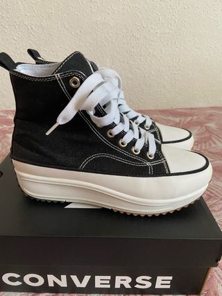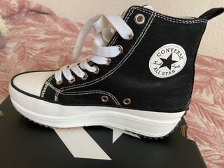 Zapatillas Converse con plataforma y suela deportiva. - Diseño de caña alta. - Cordones blancos. - Logo de Converse en el lateral. No recuerdo si las he usado alguna vez ya que me las regalaron hace años, están en perfectas condiciones.