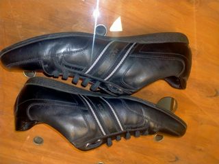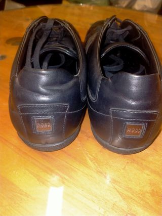 Vendo un par de zapatillas Hugo Boss para hombre. Son de color negro y tienen un diseño elegante y sofisticado con un sólo uso. - Fabricadas en cuero. - Suela de goma. - En muy buen estado.