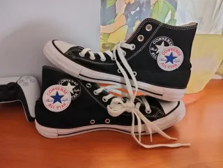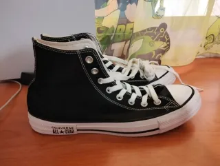 Zapatillas altas Converse originales en color negro y blanco. Como nuevas - Diseño clásico de caña alta. - Cierre con cordones blancos. - Suela de goma blanca. - Logo circular de All Star en el lateral.