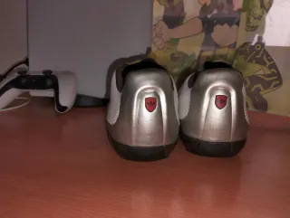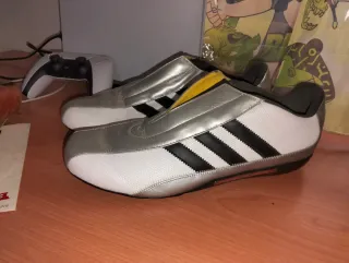 Zapatillas deportivas vintage de la colaboración entre Adidas y Porsche Design. Un diseño único que combina estilo y comodidad. Como nuevas T:42.5 Ideal para deporte o coleccionista - Parte superior en cuero sintético plateado y blanco perforado. - Detalle de las icónicas tres franjas de Adidas en negro. - Cierre sin cordones para un ajuste rápido y fácil. - Suela de goma duradera. Vintage colección deportiva hombre zapatillas deportivas Adidas coleccionista