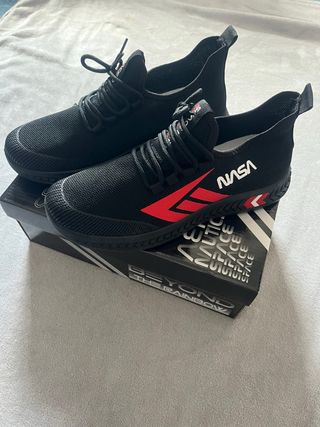 Zapatillas deportivas con un diseño moderno y llamativo. - Logo de NASA en el lateral. - Combinación de colores negro y rojo. - zapatillas totalmente nuevas,precio negociable
