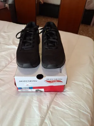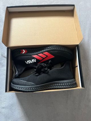 Zapatillas deportivas negras, talla 39. Son muy cómodas y están completamente nuevas, sin estrenar. - Diseño moderno con detalles blancos. - Suela flexible y resistente.