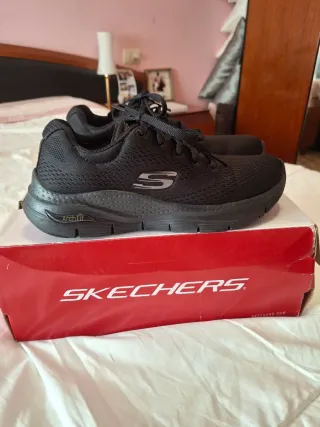 Zapatillas deportivas Skechers en color negro. Modelo Arch Fit. - Diseño moderno y cómodo. - Suela con tecnología Arch Fit para un mejor soporte. - Material transpirable.