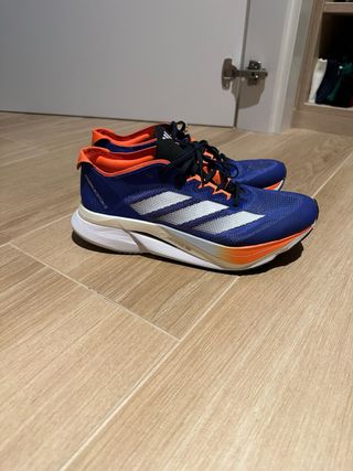 Zapatillas deportivas Adidas Adizero Boston 12 en color azul y naranja. Diseñadas para correr.