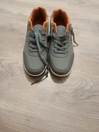 Par de zapatillas deportivas con un diseño moderno y llamativo. - Zapatillas de color naranja. - Zapatillas de color gris. - Cierre con cordones. Se gastaron 2 veces cada una Las vendo 10 euros cada par