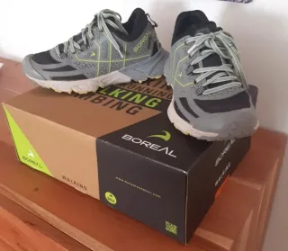 Zapatillas Boreal para actividades al aire libre. - Diseño en gris con detalles en verde lima. - Suela con buen agarre para terrenos irregulares y lluviosos. Suela antideslizante. -