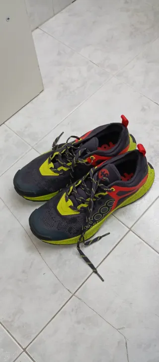 Zapatillas deportivas de la marca Décimas. Están algo usadas pero en perfectas condiciones, la zapatilla derecha tiene un desgaste cerca de la puntera de ahí su precio
