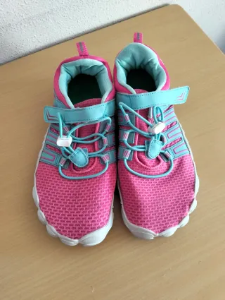 Zapatillas niña Benetton rosas y rojas,talla 33.