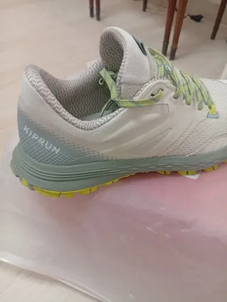 Zapatillas deportivas Kiprun para mujer. Puesto dos veces originales - Color blanco y verde. - Talla 39.
