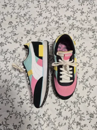 Zapatillas deportivas Puma con un diseño moderno y colorido. Poco uso, talla 36. Se entregarán limpias e higienizadas. - Combinación de colores vibrantes. - Cierre con cordones. - Detalle de logo en el lateral.
