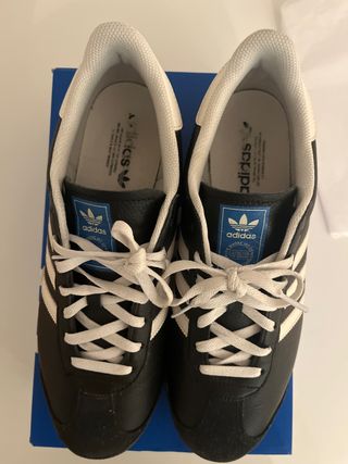 Zapatillas deportivas Adidas K 74. - Color negro con detalles blancos. - Talla 47 1/3. - Las estrene y me vienen grandes y desgraciadamente no son cómodas por que me bailan - Usadas una sola tarde, están perfectas.
