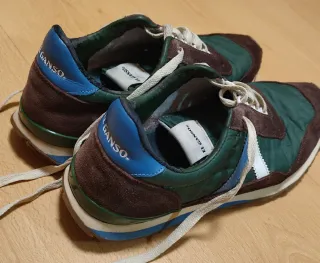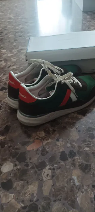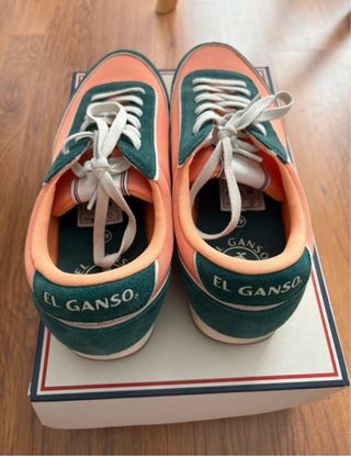 Zapatillas deportivas de la marca El Ganso. Puestas una sola vez. - Combinación de colores verde y naranja. - Diseño de estilo retro.