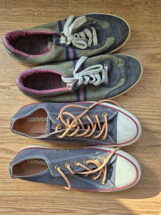Lote de zapatillas de las marcas Converse y El Ganso. - Zapatillas Converse de color azul. - Zapatillas El Ganso de tela y ante. - Talla 39. Se ven juntas o por separado; precio negociable; se hacen envíos