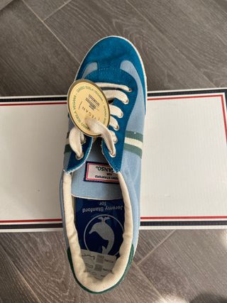 🧵 Diseño: tejido azul/blanco tipo pata de gallo + puntera de ante gris 👟 Estado: buen estado, con señales normales de uso. 🦶 Suela: desgaste y alguna marca por uso (ver foto). 🔎 Detalles: sin roturas ni despegues visibles. 📦 Incluye: sin caja (se envían bien protegidas). 🚚 Envío rápido. 💬 Escucho ofertas razonables. No cambios.