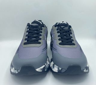 Zapatillas deportivas Fila con un diseño moderno y llamativo. Tallas disponibles 42-43-44 - Combinación de colores gris y negro. - Suela con estampado camuflaje. - Cierre de cordones.