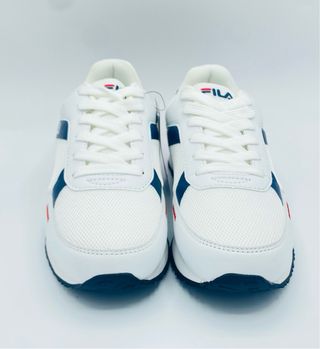 Zapatillas deportivas Fila en color blanco con detalles en rojo y azul marino. Perfectas para el día a día. - Tallas disponibles: 38 y 40. - Diseño moderno y deportivo. - Logo Fila en el lateral.
