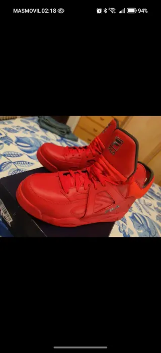 Zapatillas deportivas Fila en talla 42. Van con su caja original - Combinación de colores rojo y negro. - Diseño moderno y deportivo.
